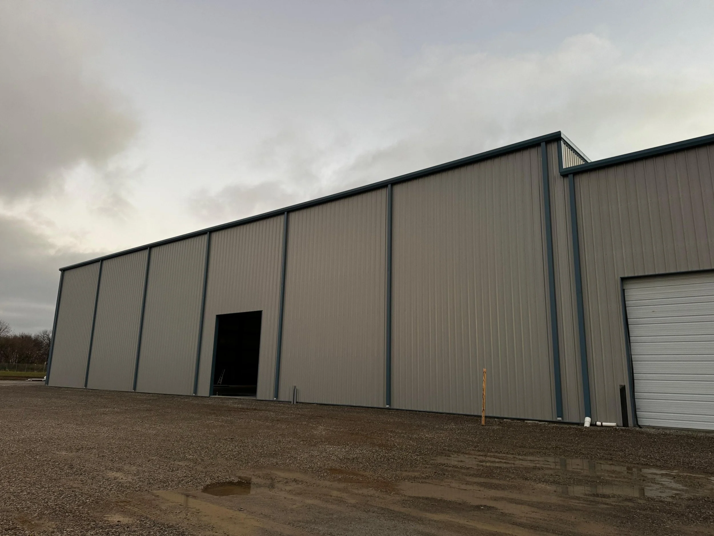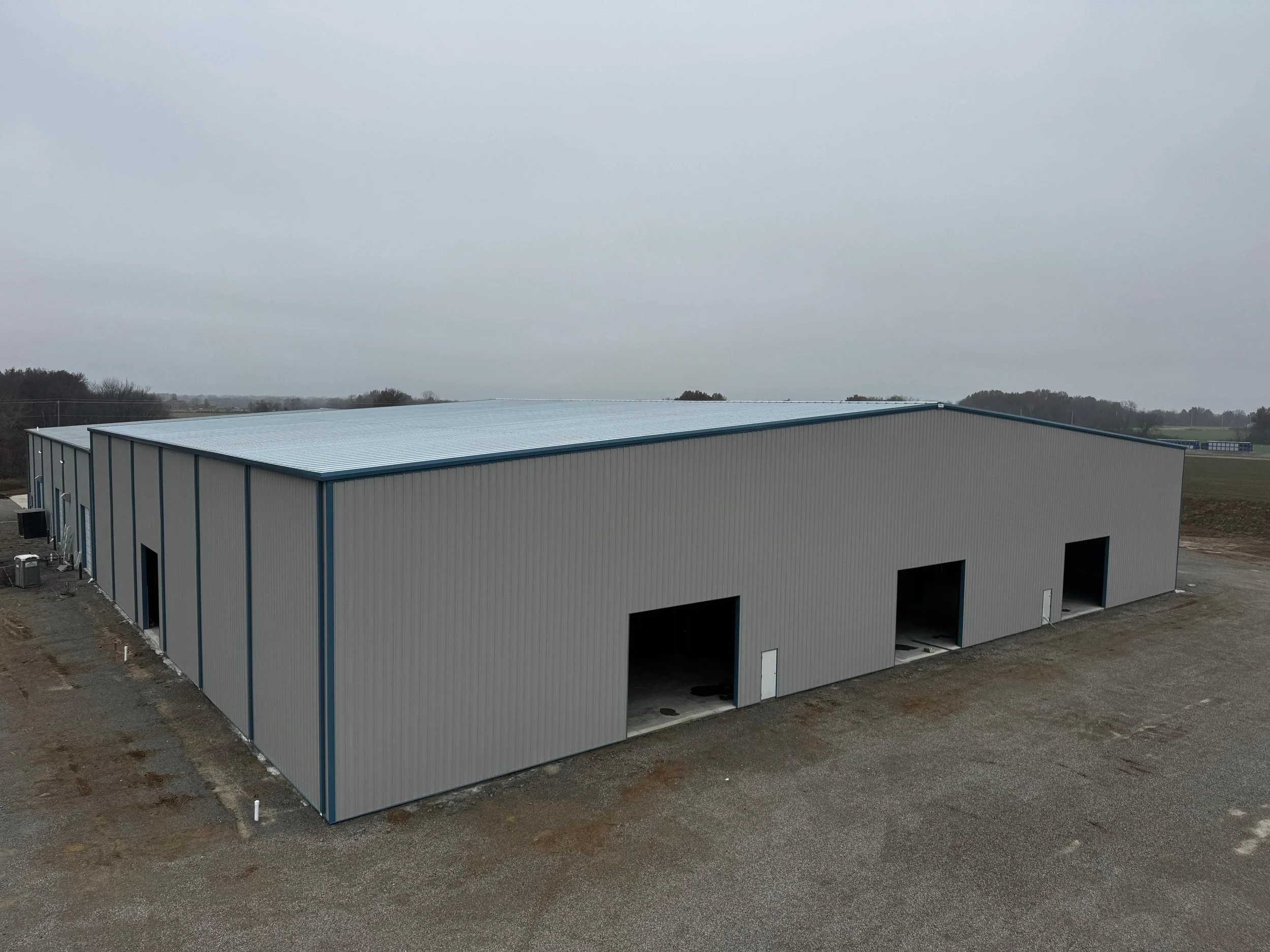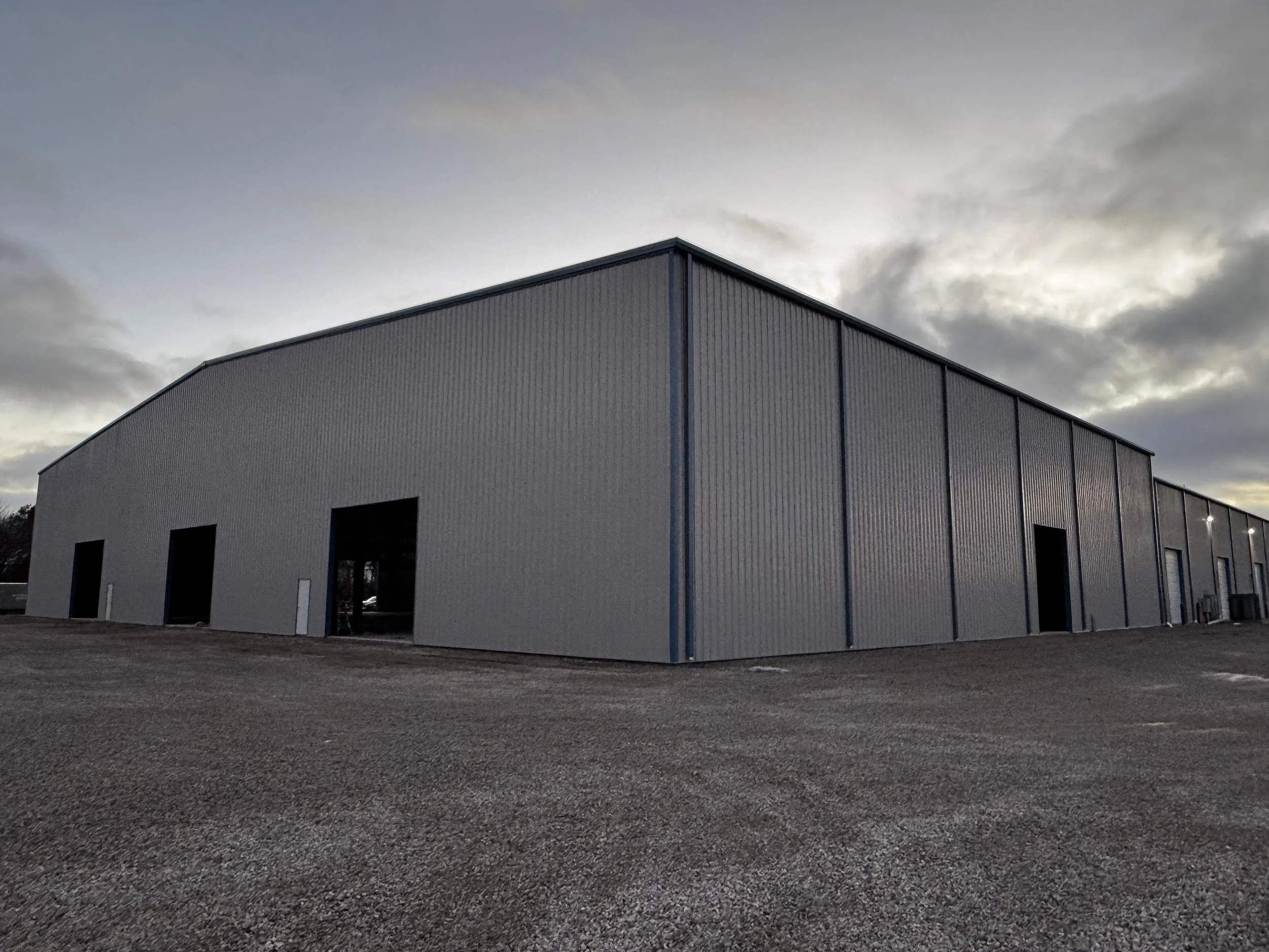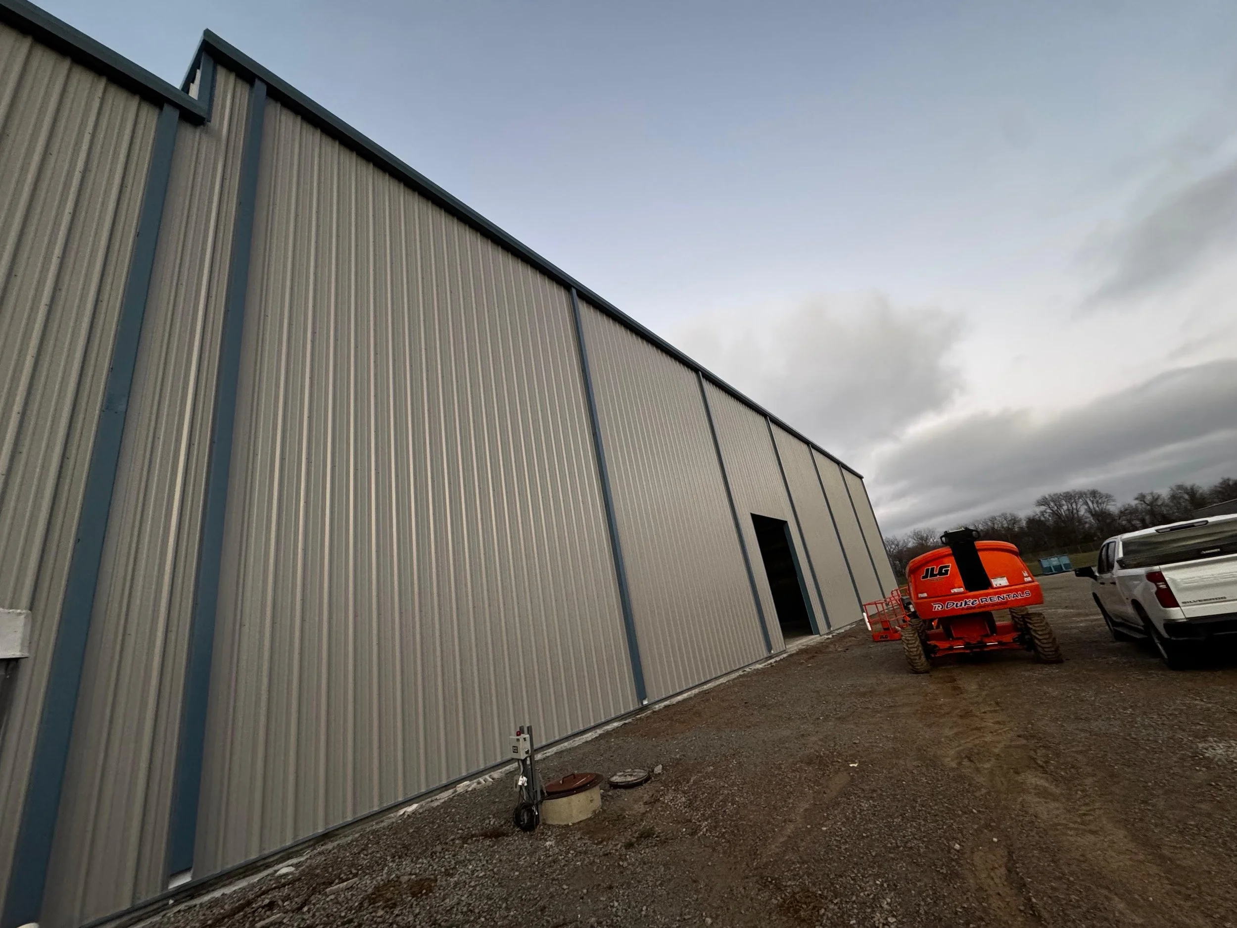 This project involved the full erection of a 210’ x 150’ x 35’ PEMB, complete with insulated roof and wall systems. Our team installed the standing seam roof, all exterior wall panels, two walk doors, and framed and trimmed five overhead door openings. Scope also included gutters, downspouts, and an 8’ interior liner panel around the new structure—delivering a durable, fully finished building envelope